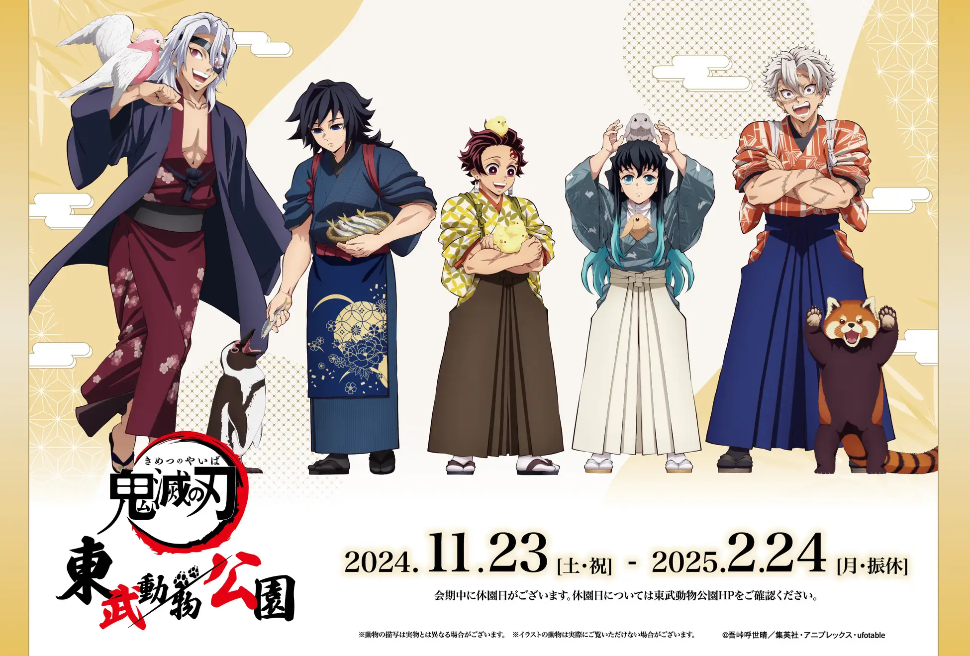 2024年11月23日(土・祝)から2025年2月24日(月・振休)の期間中、埼玉県宮代町の東武動物公園にて、アニメ「鬼滅の刃」とのスペシャルイベントが開催されます!動物たちとのコラボレーションをテーマに、限定グッズや特別展示、オリジナルフードが盛りだくさん!