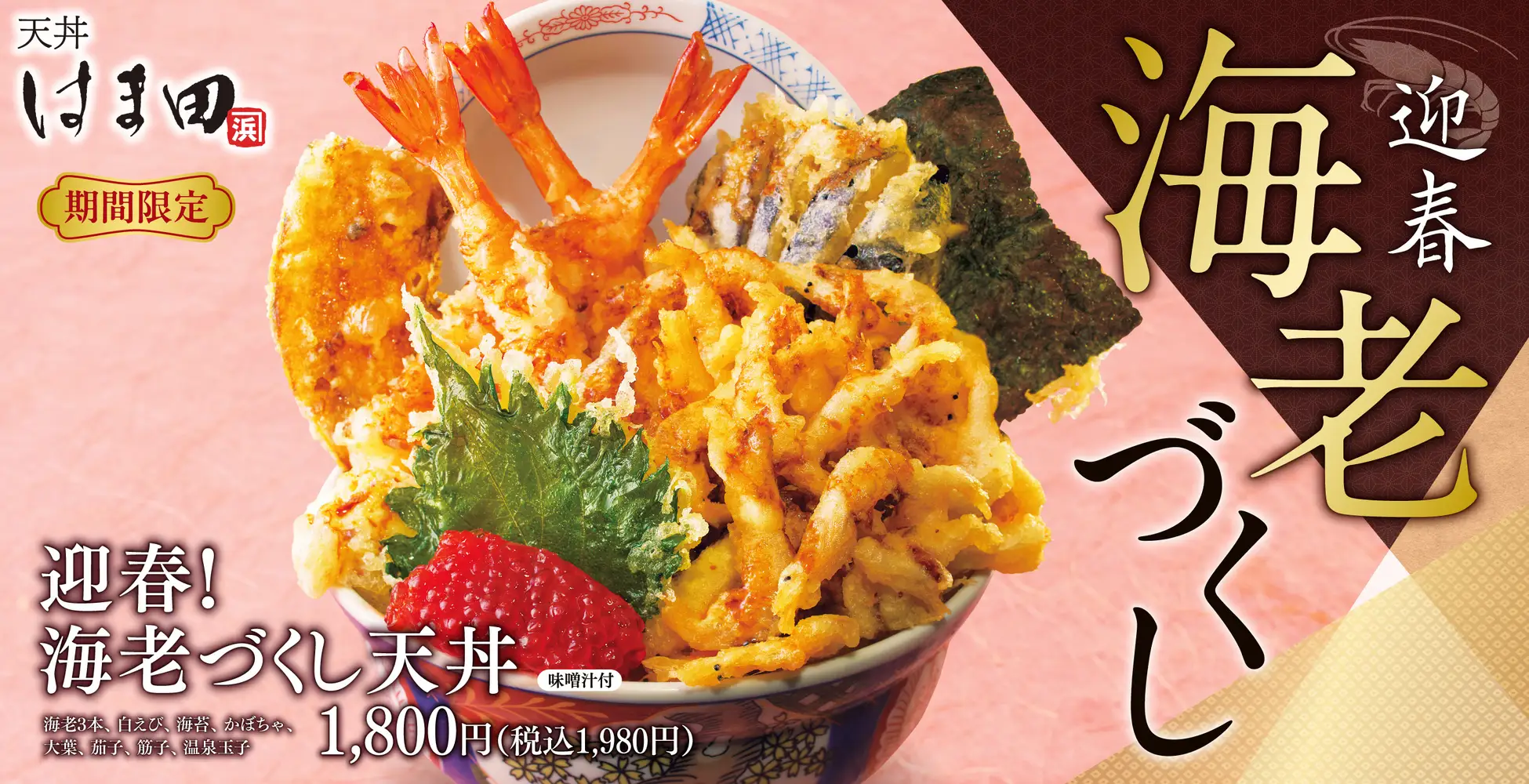 埼玉県内の「天丼はま田」各店舗で、2025年1月7日(火)から期間限定メニュー「迎春!海老づくし天丼」が販売開始!新年を華やかに彩るこの特別メニューで、贅沢な食事を楽しんでみませんか?