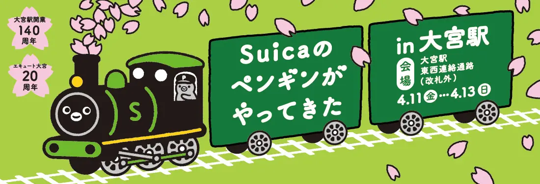 JR大宮駅の開業140周年と、エキュート大宮の開業20周年を記念して、あの大人気キャラクター「Suicaのペンギン」が大宮にやってきます!2025年4月11日(金)〜13日(日)の3日間限定で、JR大宮駅東西連絡通路(改札外)を舞台に、「Suicaのペンギンがやってきたin大宮駅」イベントが開催されます。
