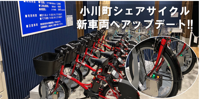 埼玉県小川町では、ワイヤレス充電搭載のドコモバイクシェアの電動アシスト自転車が設置されています。