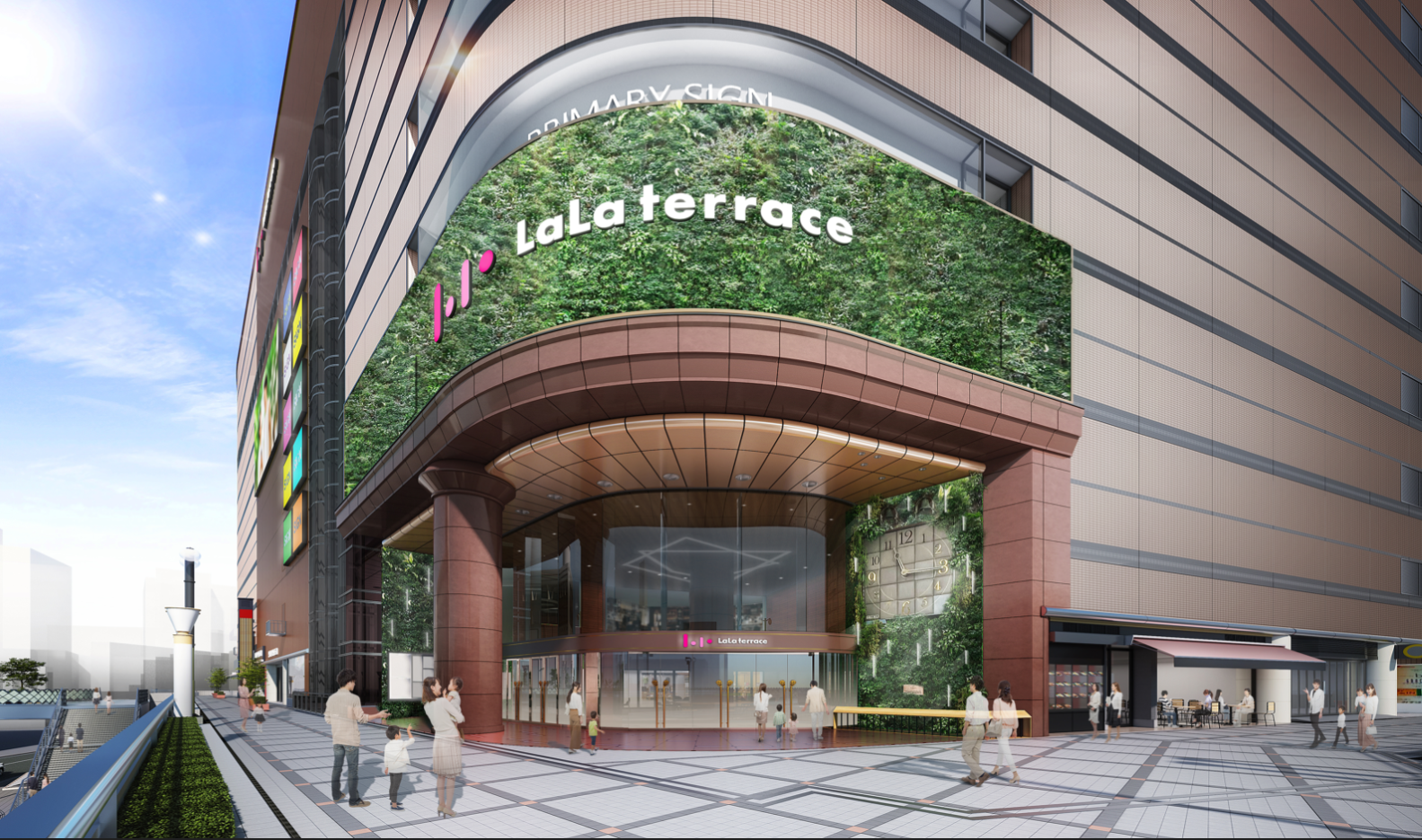 「在るもので、新しく」をコンセプトに、施設内外のリニューアルが行われた「ららテラス川口」。30年以上にわたって地域の人々に愛されたそごう川口店の面影を随所に残し、大理石の柱や壁、大時計のからくりなどが形を変えて復活。鋳物の装飾や安行の植木をモチーフにしたグリーンウォールなど、川口らしさを感じるデザインが魅力です。