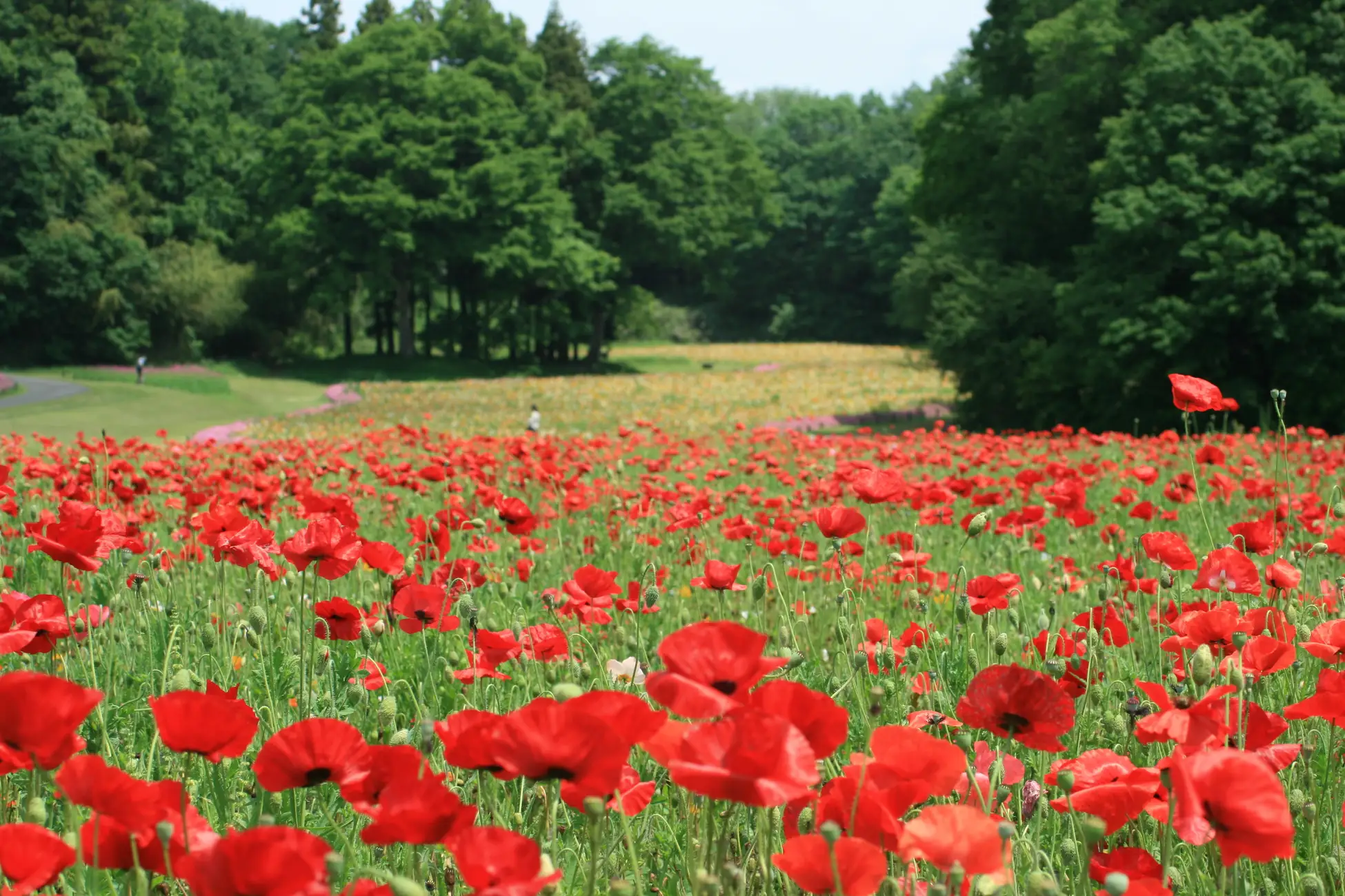 埼玉県比企郡滑川町にある「国営武蔵丘陵森林公園」では、約30万本のシャーレーポピーが一面を真っ赤に染める壮観な景色が、2025年5月13日ごろから見頃を迎えています。