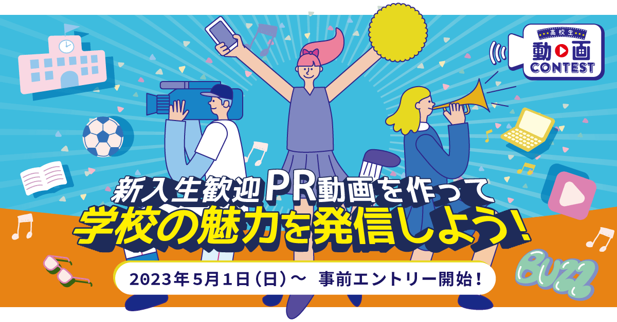 この動画コンテストが高校生のみなさんの自分らしい「チャレンジ」のきっかけになることを願っています。今年度のテーマは、「新入生歓迎PR動画」です。自分たちの学校や部活動、委員会の魅力を存分に伝えてください。