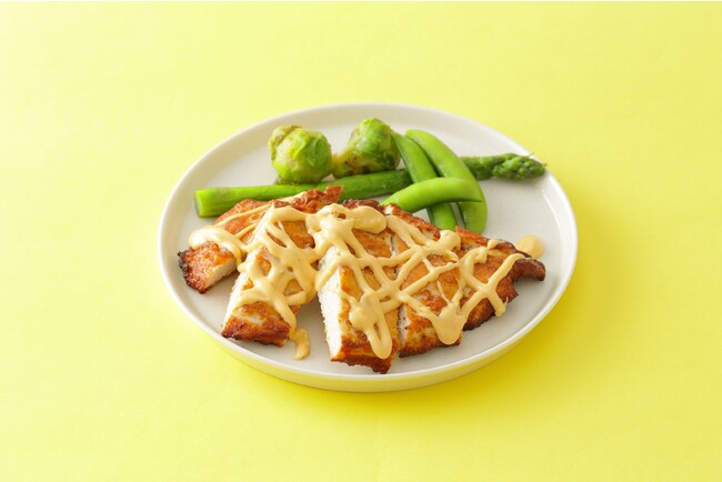 ジューシーなチキンステーキに季節の野菜を添えて、香辛料がきいたマヨネーズソースを使用した食欲をそそる一品です。